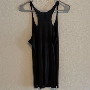 Stylish black tank top with a bold graphic design. Perfect for casual outings.
