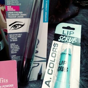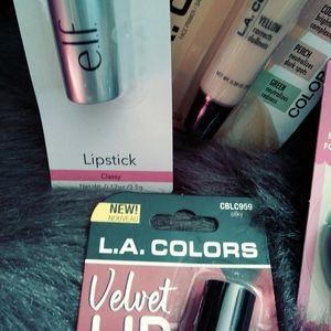 Brand new make up bundle includes elf lipstick in classy, face primer/ color corrector, mascara, lip scrub, velvet lip mousse, foundation powder, and liquid metallic eyeliner. Will include a face mask and make up bag.
