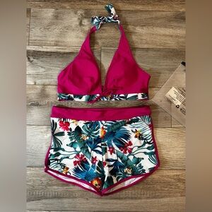 Halter Top Floral Swim Shorts Bikini