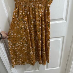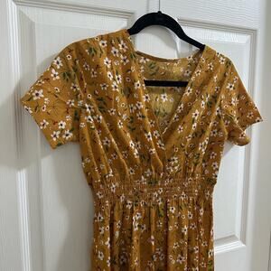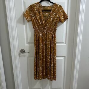 MakeMeChic Women's V Neck Floral Print A Line Midi Dress Mustard Yellow sz Small