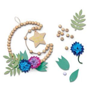 Welcome guests or family members during Ramadan with the Make-Your-Own Ramadan Beaded Moon Wreath Kit From Mondo Llama™. This moon wreath kit includes wood beads, paper flowers, wire moon shape, rubber connector tube and more to help create an elegant display. String the beads, decorate with paper flowers, add the star with the message "Ramadan Mubarak" and display on the door or anywhere else. Mondo Llama™: Find your creativity in the making.