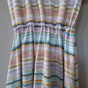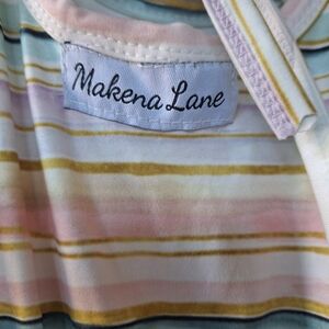 Makena Lane Girls dress. Maxi. Short flutter sleeves. Multicolored stripes. Stretchy. Eyelet ruffle hem. Elastic waistband. Rounded neckline. Back tie closure that creates a keyhole. Size XL. 8/10 Pit to pit flat lay 12" length from collar to hem 36.5" measurements are approximate