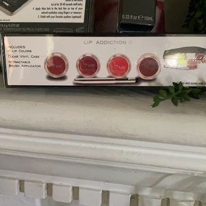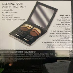 4 lip colors with retractable brush, eye shadow palette with eyelash, and eye shadow primer