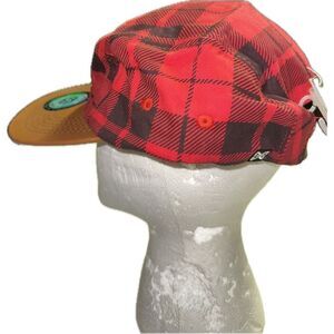 Makerwear Hat Mens One Size Red Black Adjustable Casual Buffalo Check Flannel