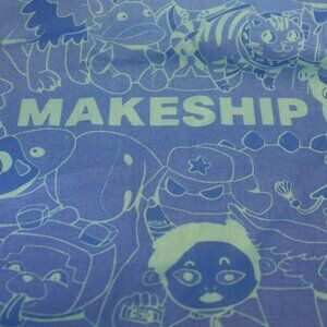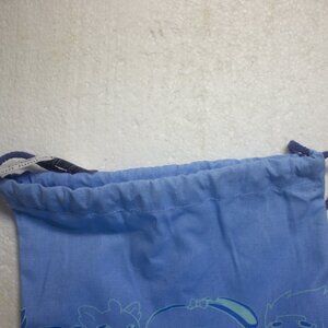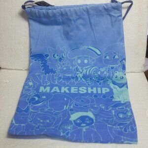 This is a blue Makeship drawstring bag. Bag is in good condition with no tears or rips noted. This is a bag only no plush.