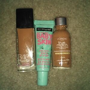 Primer Maybelline New York BABY SKIN, Foundation Maybelline Fit me Loreal true match. Lip liner MILANI BERRY CHARMING.