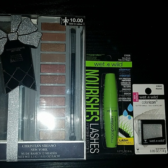 Christian Siriano 12 shades nude basics, wet n wild nourish last mascara and wet n wild glitter single