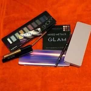 1- Profusion smoky eyeshadow palette, another Profusion mixed metals glam, 1 original Kylie concealer (sand), Berries eyeshadow palette, Highlight/ Accents Lumineux, also Profusion lip gloss & lip liner and finally a Max studio liquid eyeliner and an extra eyeshadow brush. All brand new in it's original packaging. Never used.