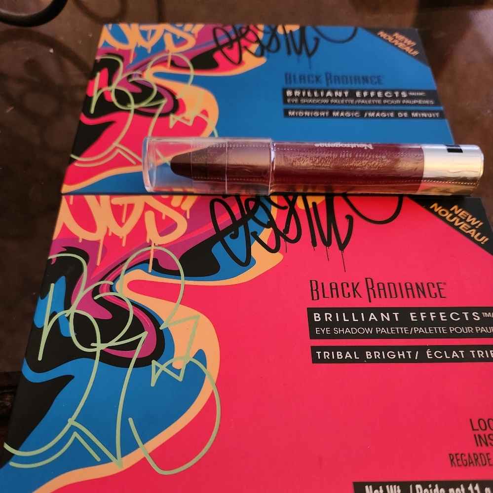 This is Two Black Radiance Brilliant Effects eyeshadow pallets. The second pallet is Midnight Magic. The third is Tribal Bright. plastic is still on the so it's never been used.