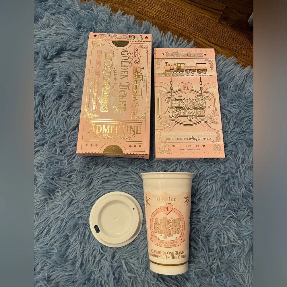 Brand new to makeup pallet by PLlouise one blush and one highlighter and a cup