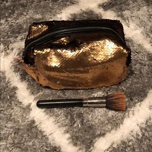 Beautiful bronze gold and black make up bag. A good size to fit make up brushes. (Brush not included)