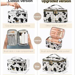 [Travel Companion] Stylish and durable for traveling. Roomy space for carrying all makeup accessories or grooming supplies. It fits 18 brushes, a ton of makeup products including a full size setting spray, multi pack lashes, palette and micellar water etc. The removable middle section design, side pocket the different areas that would separate your most basics: eyeliner, concealer, lipstick, mascara, blush, foundation, moisturizers, skin care, deodorant, hair stuff, gel nail polish etc.