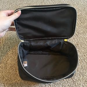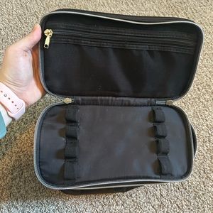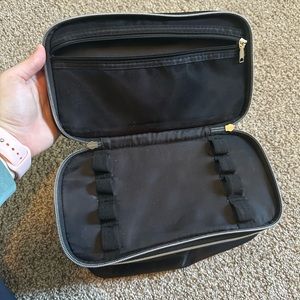 Two compartments - bottom is large and top compartment is smaller for brushes and smaller items.