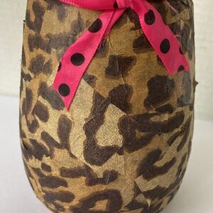 Decoupaged Cheetah Print Glass Jar in a Pear Shape