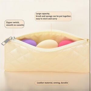 Complete makeup brush set with 10 makeup brushes, 3 blending sponges and a quilted case.