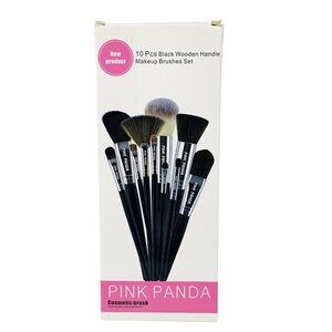 This Pink Panda Makeup Brushes Set is a 10 pc collection featuring black brushes with charming pink panda wooden handles. Perfect for personal or professional use, these brushes offer quality and style.