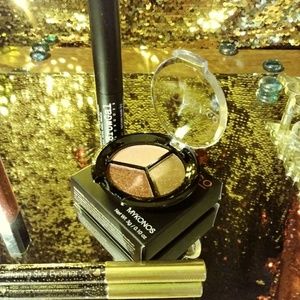 Model Co metallic eyeshadow Trio, jonteblu eyeliner stick, Julep lip gloss, and the browgal brow gel.