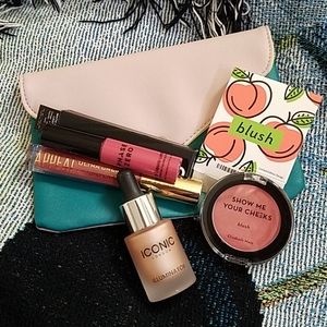 Makeup bundle. All items brand new no swatches. 2 lip items, blush and liquid illuminator. Will include cute makeup bag