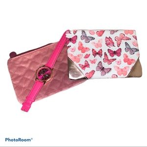 7 Items all brand NEW make up bundle name brands like tart brand new watch. Facemask lip color eyeshadow palette lip gloss 2 make up bags watch.