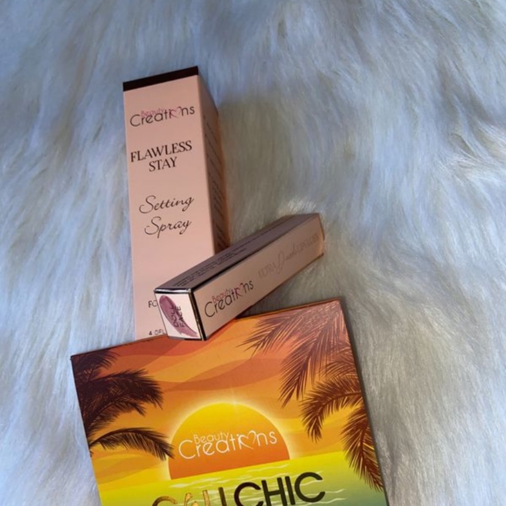Brand new Cali Chic palette by beauty Creations , “doll face” lipgloss by Beauty Creations , setting spray by Beauty Creations