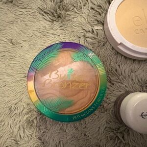 Unused makeup I got in a mystery box but not the right tones for my skin color. 2 Elf brand 2 mineral powders 2 eyeshadow palettes 1 Bronzer 1 loose powder