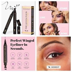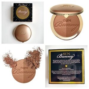 All brand new and unused makeup including full size Beauty Bakerie Do It For The Graham Eyeshadow Palette (retail $38), full size Pat McGrath Labs Dark Star Mascara (retail $34), full size The Quick Flick Winged Eyeliner Stamp (retail $30), full size Mellow Cosmetics Lip Gloss (retail $17), full size Too Faced Sun Bunny Duo Bronzer (retail $36) and full size Jazmine Beauty Bronzer Brush. Includes makeup bag.