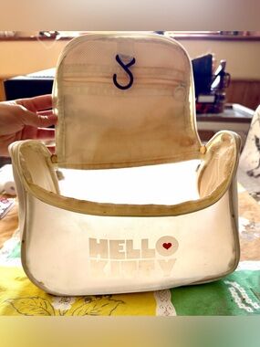 Cosmetic set with palettes, foundation, concealers, blush, bronzer, mascara, etc. The sponges and one elf concealer is unused. The rest is lightly used for the most part. Hello Kitty bag for storing, and a tiny compact mirror.