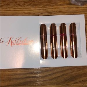Makeup lot! Cleaning out my makeup drawers. Too face peach palette brand new in box. Kylie Jenner koko collection lips new in box. 5 Wet n wild liquid catsuit lipsticks brand new. Brushes brand new. Avon lipstick swatched once each. Clinique lipstick in the color love pop and lipliner in the color intense cosmo. 2 coloup pop ultra matte in the colors LAX and Rooch. 2 new makeup bags. NYX eyeshadow palette. Clinique eyeshadow trio. Victoria’s Secret pout lipgloss. Makeup revolution highlight drop