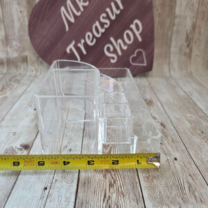 This is a pre-owned clear acrylic organizer. It features a tiered design with multiple compartments of varying sizes and shapes, suitable for storing small items.. The acrylic material is transparent, allowing for easy visibility of the contents. There are no visible cracks or major damages, but minor surface scratches may be present due to previous use.