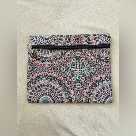Zipper closure with wipeable interior. Never used! Measures 10.5 inches x 8.5 inches.
