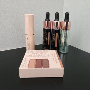 Makeup Revolution LOT Fast Base Stick Foundation #F12, 2 Bronzer, Highlighter, Contour Compact Deep