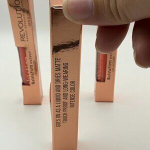 Elevate your lip game with this stunning 3-piece set of *Revolution Salvation Velvet Lip Lacquer* in the shade *The One For All*. Designed in London and crafted for bold beauty lovers, this liquid lipstick glides on effortlessly and dries to a flawless matte finish. With intense color payoff and touch-proof wear, it's your go-to for all-day glam. Each lacquer is individually boxed in sleek rose gold packaging, perfect for gifting or personal indulgence.