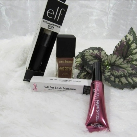 Black Radiance Foundation, Full Fat Lash Mascara, Highlighting Stick -Dewy-, Infallible Paints Metallics #332. The products have never been opened.