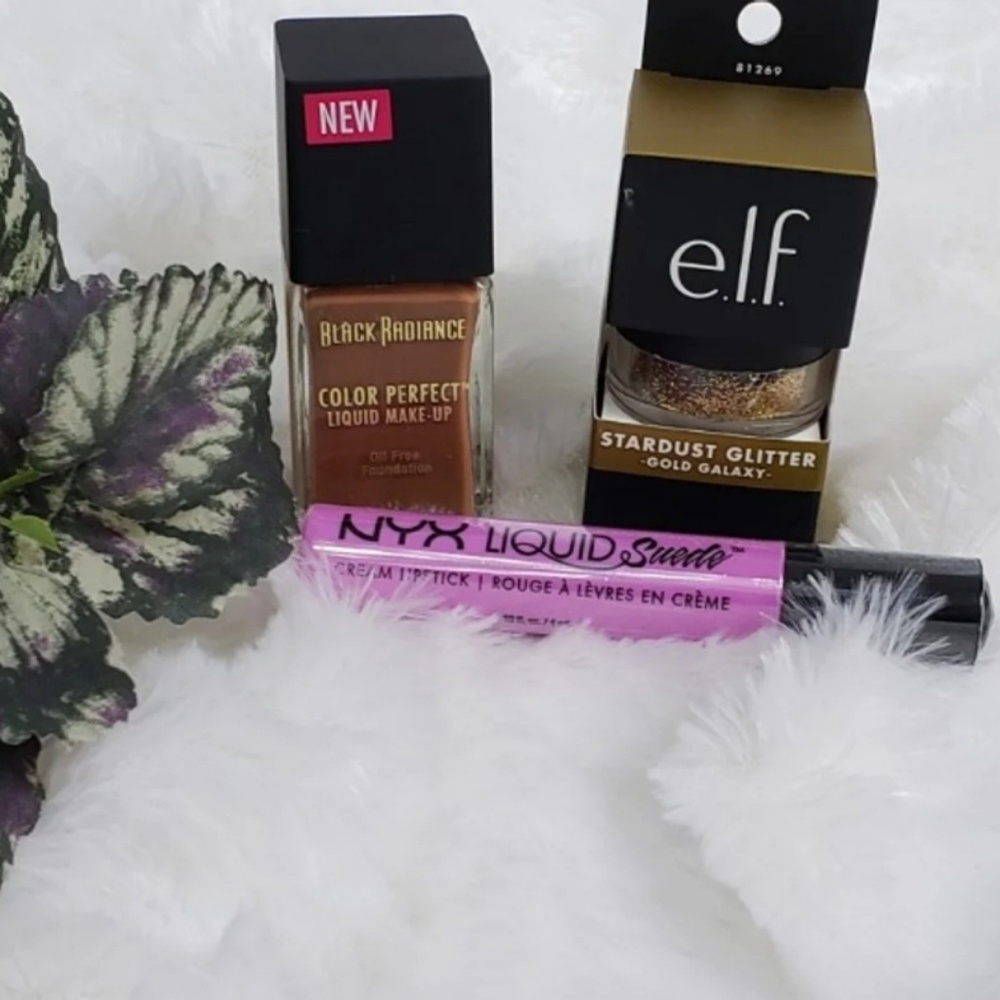 Makeup Set: Black Radiance Foundation, Stardust glitter, and NYX cream lipstick. The products have been never been opened.
