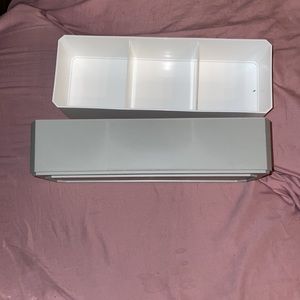 Makeup storage bins for your makeup sets and brushes and tools… brand new just bought never used 4 containers. I have 2 colors just comment or tell me which colors you want