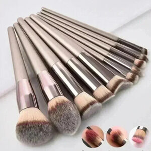 -New Good quality 10 piece Makeup Brush Set in Champagne color