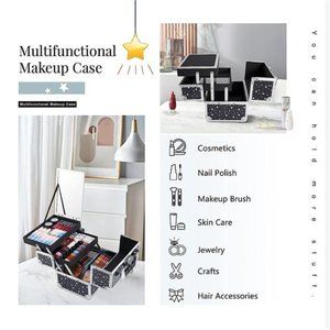 🧿♦Shiny Star Design: The makeup case comes in an exclusive style with multiple stars on the white surface. It show various effect under different light environment. Note: Makeup brushes and other cosmetic accessories are not included, only for reference.