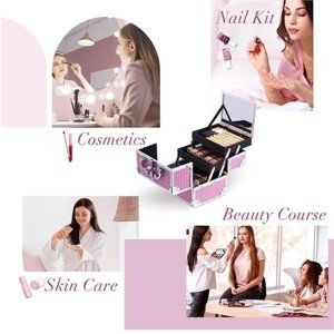 🧿Pink Style: The makeup case comes in an exclusive style with small diamond bump on the pink surface.It show various effect under different light environment. Note: The cosmetic accessories are not included, only for reference.