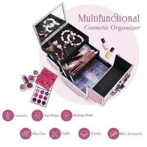 Makeup Train Case Portable Cosmetic Box Jewelry Organizer Lockable with Keys