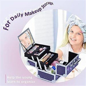 Makeup Train Case for Girls Cosmetic Box Jewelry Organizer Hair Accessories