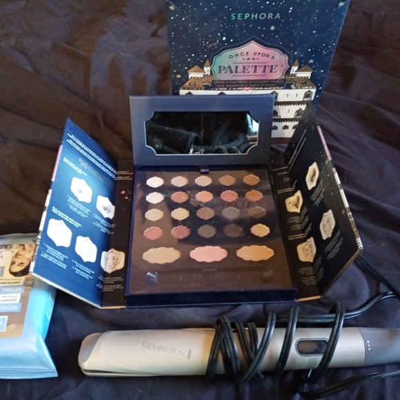 Sephora "once upon a palette" great unused condition except the lipstick as shown on back of box is missing. A few colors may have been swatched the palette comes in original box ☺️❤️. Also including in this lot is a remington straighting/curling wand originally 35$ (NWOB)
