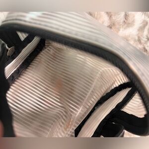 The smaller clear bag does have a little discoloration on the bottom I pictured