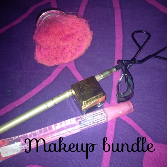 Makeup bundle. Gel liner, Milian brow pencil, Victoria's secret brush, INSPIRED Mac lash curler, and bath and body works gloss.