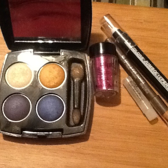 Avon eyeshadow glitz and glamour quad, loose pink glitter, jumbo eye pencil, eyelash glue, eyebrow pencil. Sold separately or together. Just ask for individual prices! 😊🎀💎