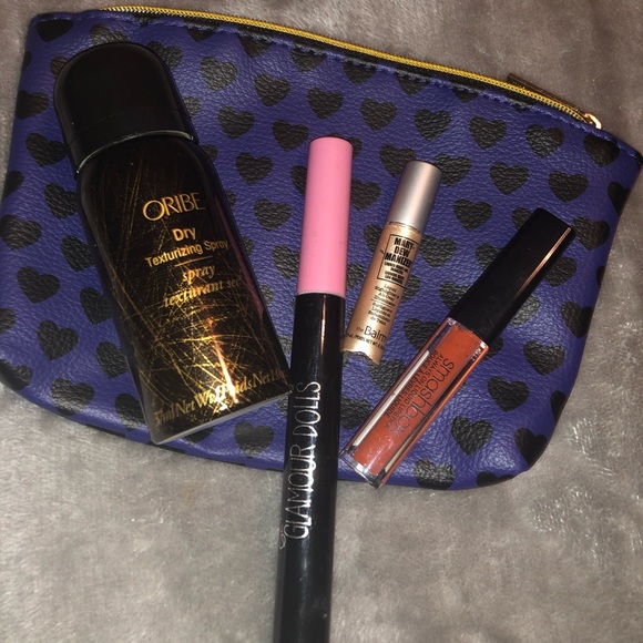 Never used texturizing spray, mascara, highlighter, and smashbox liquid lipstick makeup bag