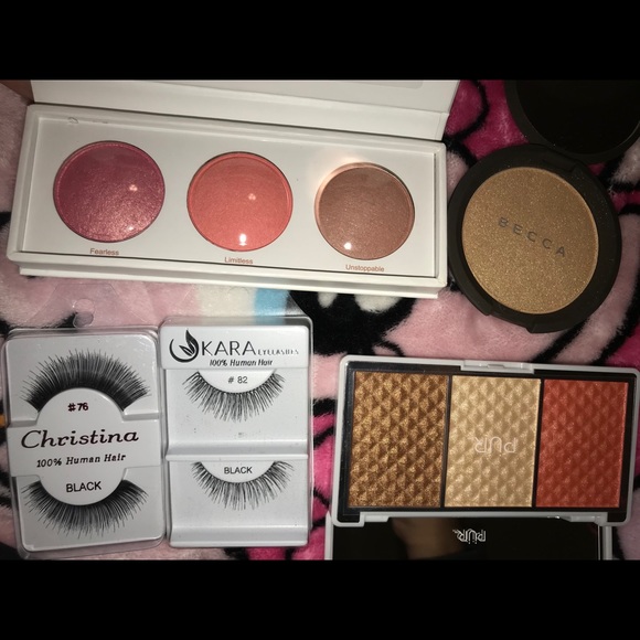 Selling all these makeup products together as a bundle. Jaclyn hill x Becca limited time prosecco pop. Blush kit, Kara lashes, pur cheek palette. The Becca highlight itself is worth $30 so this deal is really good for the bundle of makeup. Feel free to make me an offer 😚