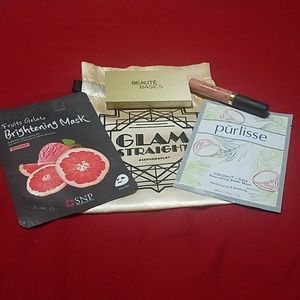 Beaute basic bronze essentials, 2 face mask, tarteist lip paint in salty and bag included
