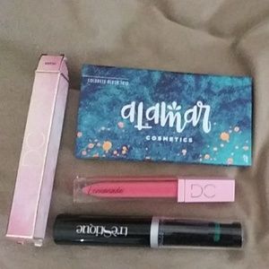 Brand new alamar blush duo in the color medium tan lip gloss Dominic cosmetic lemonade brand new with box and trestique mascara with a built-in eyelash curler