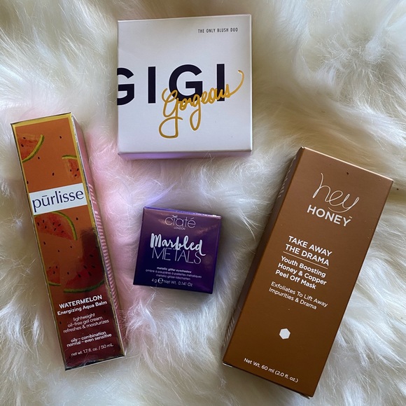 Awesome makeup bundle here. Duo Blush set, face moisturizer, facial mask, and Eyeshadow! All full sized, no sample sizes here!