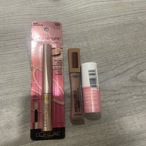 New, authentic, not tested. Bundle includes Anastasia Beverly Hills soft glam II mini eyeshadow palette, L’Oréal liquid eyeliner, L’Oréal matte liquid lipstick in color sweet tooth, and cover girl glow stick in color pink thrill